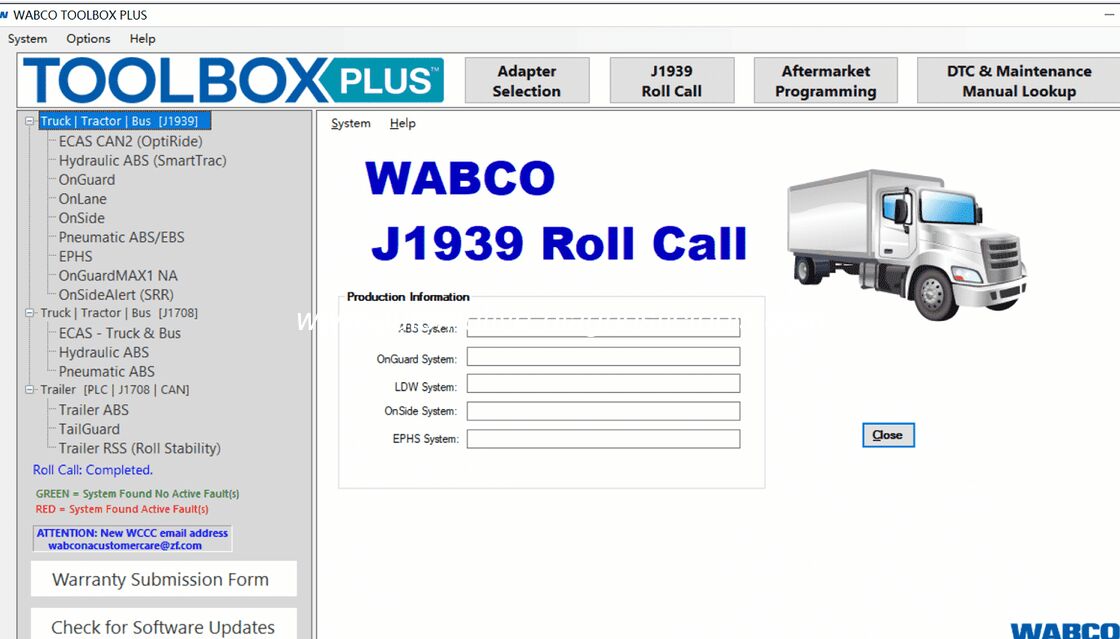 ABCO TOOLBOX PLUSявляется продвинутым диагностическим программным обеспечением, предназначенным для поддержки всеобъемлющей линейки продуктов WABCO, включая системы ABS, контроля устойчивости и смягчения последствий столкновений.Это позволяет техникам проводить диагностику, системных тестов и эффективного программирования ECU с использованием различных поддерживаемых интерфейсов.