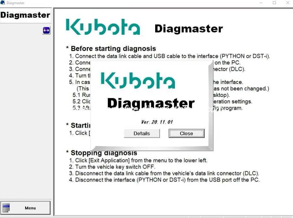 ДиагмастерС помощью новых функций, таких как автоматическое обнаружение транспортного средства,Руководство по записи данных и устранению неполадок, платформа Diagmaster предлагает всю диагностическую информацию, необходимую для усовершенствованного поиска проблем.Уникальный дизайн позволяет легко расширять и обновлять для поддержки новых систем управления и транспортных средств. Diagmaster включает в себя базу данных Merlo, All, Dieci, Bobcat, Manitou, Nonself, Kubota, Carrier, Takeuchi и CNH, имеет уровень 9