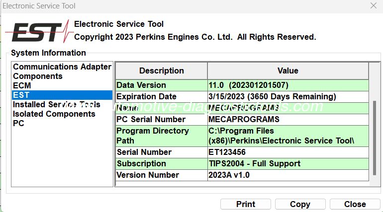 Perkins EST (Electronic Service Tool) - это программное обеспечение для дилерского диагностического инструмента для двигателей Perkins. Перкинс ESTпредназначен для работы на персональном компьютере (PC) под управлением Microsoft Windows.Он будет общаться с электронными модулями управления (ECM) через связь данных связи, что позволит вам диагностировать существующие и потенциальные проблемы, конфигурировать продукт и получить данные для анализа.